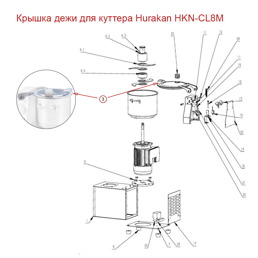 Крышка дежи для куттера HURAKAN HKN-CL8M. Поз. 10