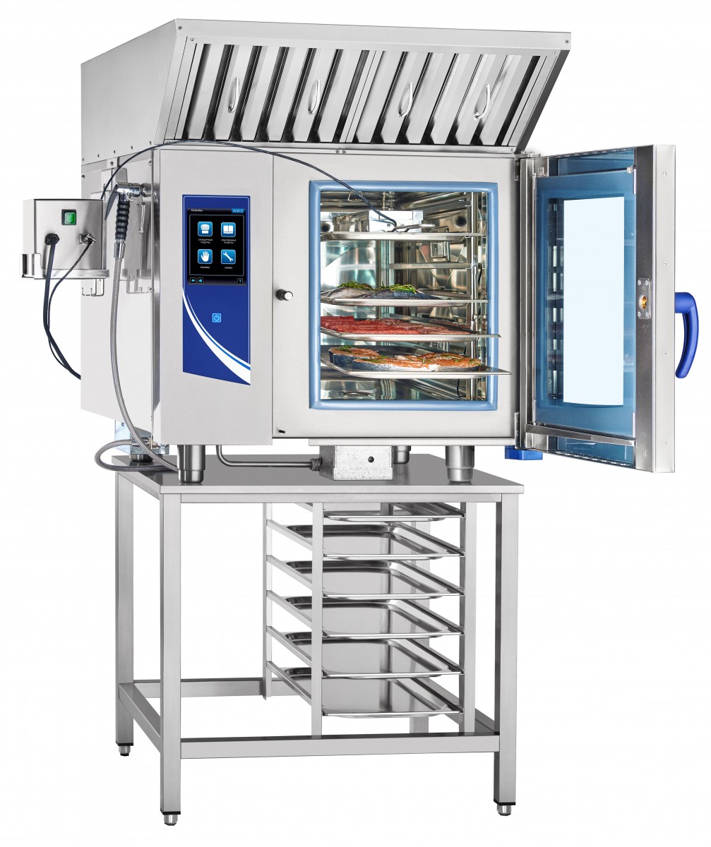 Данный способ установки имеет зеркальный тип - возможность установки, как с правой, так и с левой стороны пароконвектомата.