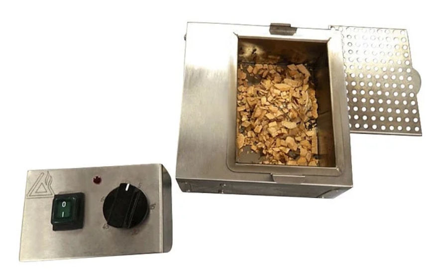 предназначен для приготовления мяса, рыбы, птицы и овощей горячего и холодного копчения на предприятиях общественного питания и торговли. Корпусированный электрический нагреватель с емкостью для щепы помещается в пароконвектомат или конвекционный шкаф. Модель оснащена термозащитным электрическим проводом.