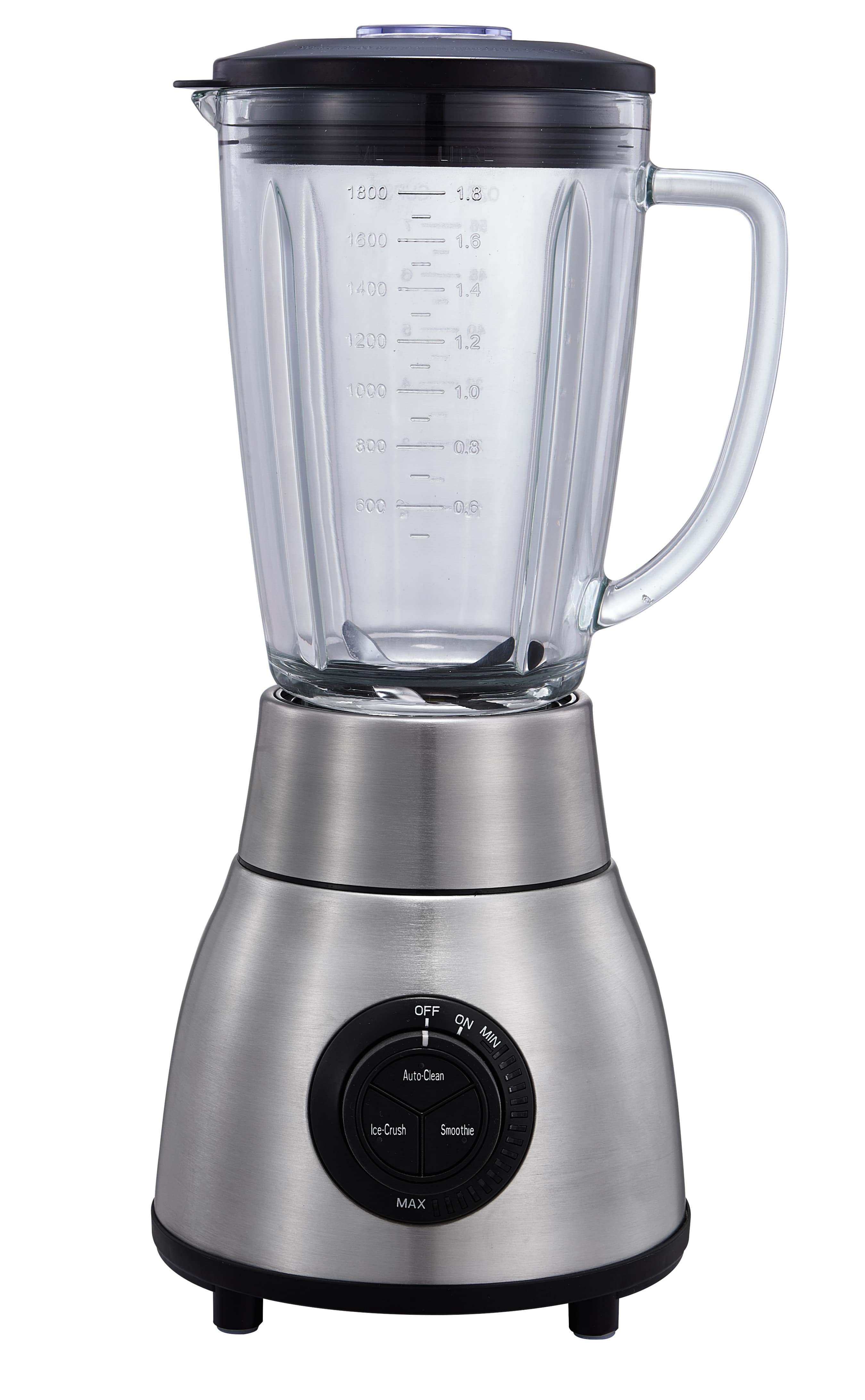 питания и торговли. Корпус изготовлен из нержавеющей стали. Стакан — из стекла. Механическая панель управления с LED-подсветкой. Плавная регулировка скорости: от 17000 до 20000 об/мин. Три режима