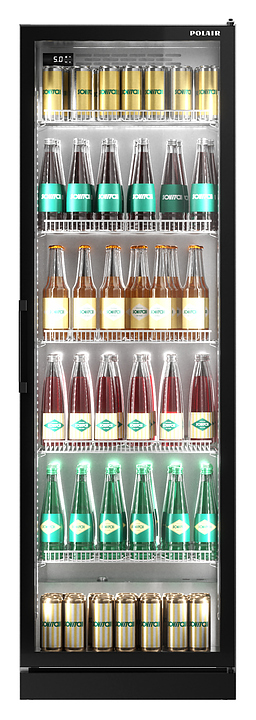 - Максимальная обзорность продуктов: напитки занимают весь фронтальный периметр шкафа