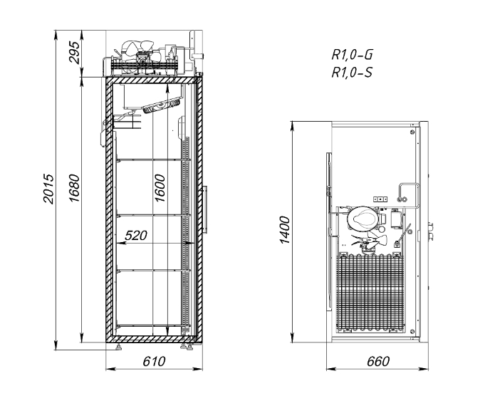 Шкаф холодильный среднетемпературный ARKTO R1,0-G (0...+6°С) имеет внутренний объем 1000л и предназначен для хранения охлажденных продуктов питания в продовольственных магазинах и на предприятиях общественного питания.