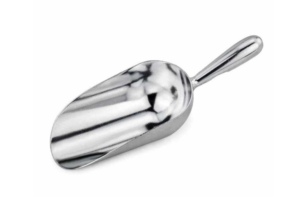 Совок METAL CRAFT KW-III-M12 - профессиональный совок для сыпучих продуктов. Изготовлен из алюминия. Длина с ручкой 22 см, ширина 8 см, высота 4 см. Вместимость 340 г.