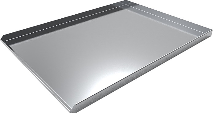 Пекарский противень из алюминиевого сплава. Алюминиевые противни легкие, обладают меньшими адгезионными свойствами, чем сталь, и мало подвержены коррозии. Применим для выпекания большинства хлебопекарных рецептур. Толщина алюминиевого листа - 1,5 мм. 3 борта 90°, 1 борт 45°. Высота бортов - 23 мм.