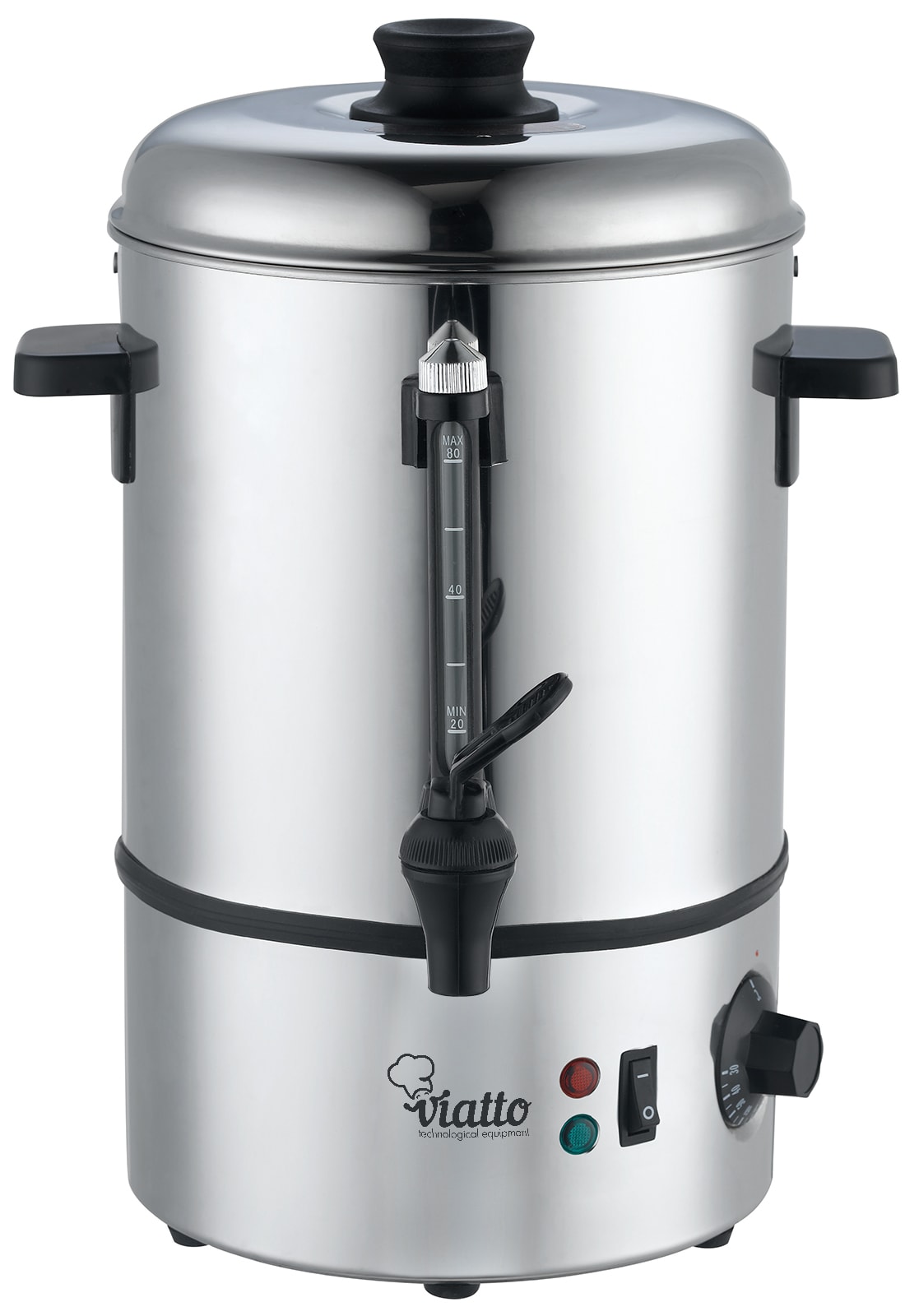 Электрокипятильник VIATTO VA-WB08SS используется на предприятиях общественного питания и торговли для нагрева и кипячения воды. Настольный заливной. Корпус изготовлен из нержавеющей стали. Закрытый нагревательный элемент. Одинарные стенки. Мерное стекло позволяет отслеживать уровень воды. Терморегулятор дает возможность установить температуру в пределах +30...+100С.