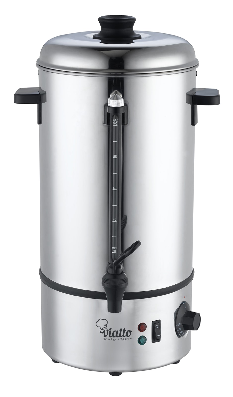 Электрокипятильник VIATTO VA-WB10SS используется на предприятиях общественного питания и торговли для нагрева и кипячения воды. Настольный заливной. Корпус изготовлен из нержавеющей стали. Закрытый нагревательный элемент. Одинарные стенки. Мерное стекло позволяет отслеживать уровень воды. Терморегулятор дает возможность установить температуру в пределах +30...+100С.