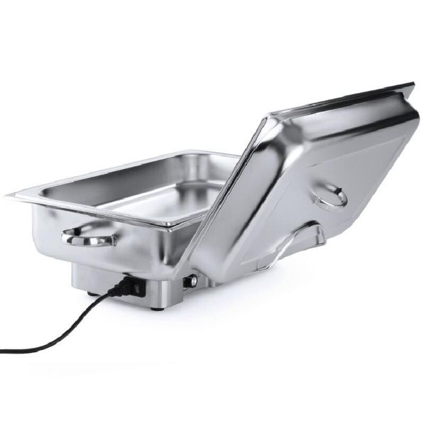 Чафинг-диш VIATTO VA-CD09A предназначен для поддержания в горячем состоянии широкого спектра блюд на предприятиях общественного питания и торговли. Модель оснащена 1 гастроемкостью и терморегулятором. Корпус и емкость выполнены из нержавеющей стали. Имеет съемную крышку, которая может быть закреплена в открытом виде на специальном держателе.