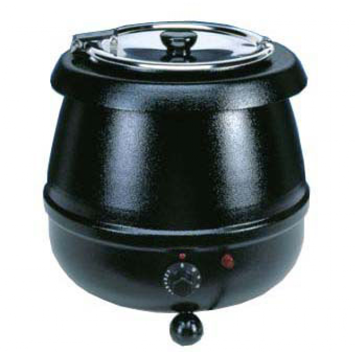 Мармит для супов GASTRORAG 83010SP позволяет всегда иметь под рукой готовое к подаче на стол первое блюдо. Он представляет собой «котелок» из окрашенной стали с электропродогревом, в который вставляется емкость из нержавеющей стали объемом 10 л. Тип подогрева – влажный, прежде чем вставлять суповую емкость в резервуар мармита, его необходимо наполнить водой. Благодаря щадящему подогреву на «водяной бане» внешний вид, вкус и польза супов остаются неизменными в течение длительного времени. Крышка емкости – съемная, откидная на шарнире, с прорезью для половника. Температура супа регулируется при помощи ручки термостата, которая градуирована арабскими цифрами от 0 до 12. Рекомендуемое положение ручки для сервировки горячих блюд – от 1 до 8.