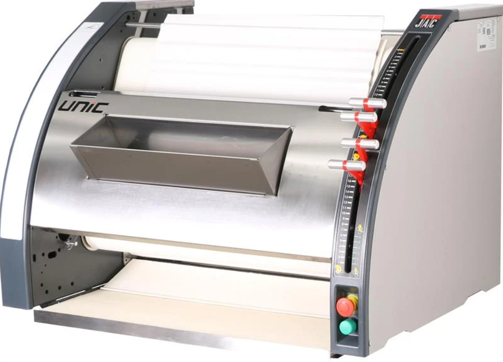 Тестозакаточная машина Jac Unic используется на предприятиях общественного питания и торговли, в пекарнях и кондитерских для формования заготовок для батонообразных изделий и багетов. Модель оснащена 3 раскаточными валиками, эргономичными рычагами регулировки, системой выдвижных кассет для простой замены лент, выдвижной полкой-пеналом, рукоятками для транспортировки и местом для записи настроек, которые стираются сухой тряпкой.