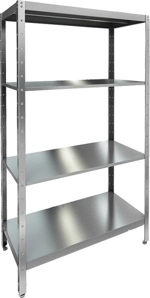 4 полки из шлифованной нержавеющей стали ASIS430 усилены дополнительными ребрами жесткости.