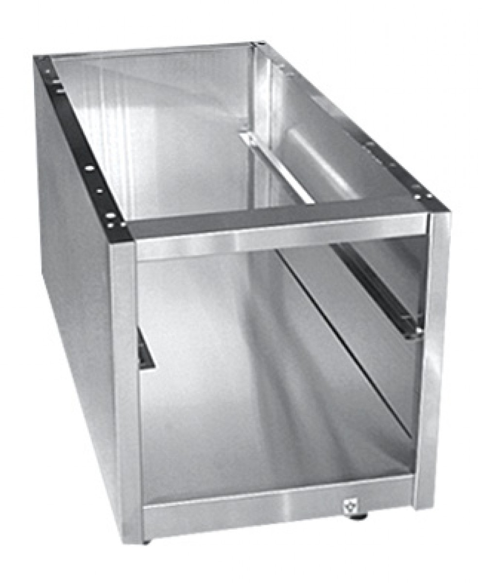 Открытая с лицевой стороны нижняя полка. Направляющие для одной гастроемкости размером GN 1/1. Регулируемые по высоте ножки.