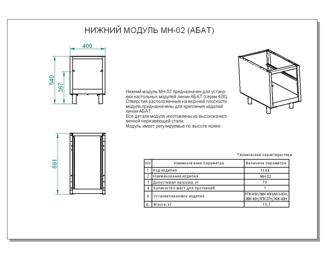 Модуль нижний Abat МН-02 предназначен для установки настольных модулей тепловой линии 700 серии