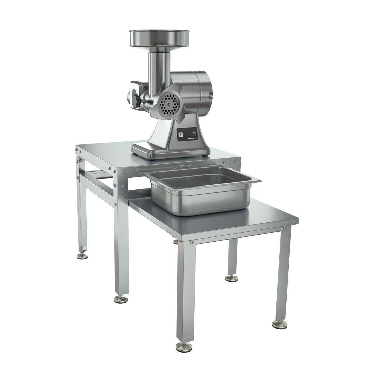 Подставка ATESY (АТЕСИ) ПДЭ-С-500.500.500-02 предназначена для установки электромеханического оборудования (мясорубки, овощерезки и т.д.) на профессиональной кухне. Подставка имеет выдвижную полку, что значительно сокращает рабочее пространство на кухне. Размеры выдвижной полки рассчитаны под гастроёмкости GN 1/1 или кастрюли объемом 30 - 40л. Общие габариты подставки с задвинутой внутренней полкой 500х500х500мм, габариты выдвижной полки 415х400х380мм.