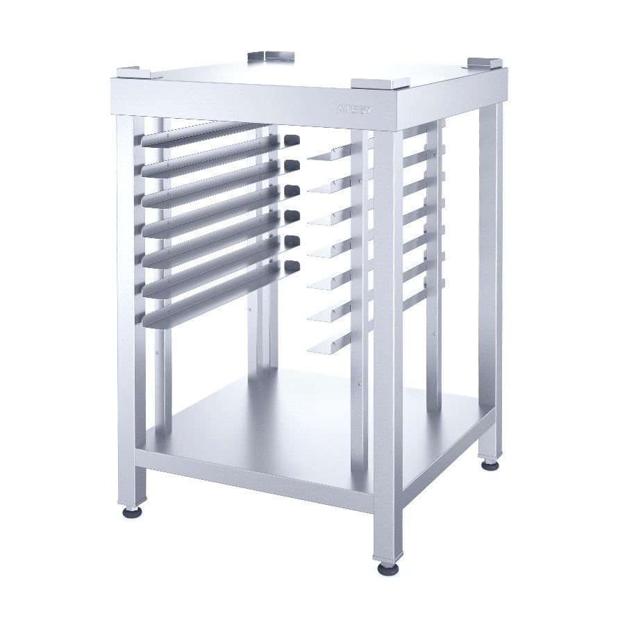 Подставка под пароконвектомат ATESY ПДТ-Л-700.600.960-02 предназначена для установки на ней пароконвектоматов АПК «Рубикон». Выполнена из нержавеющей стали AISI 304, конструкция разборная.