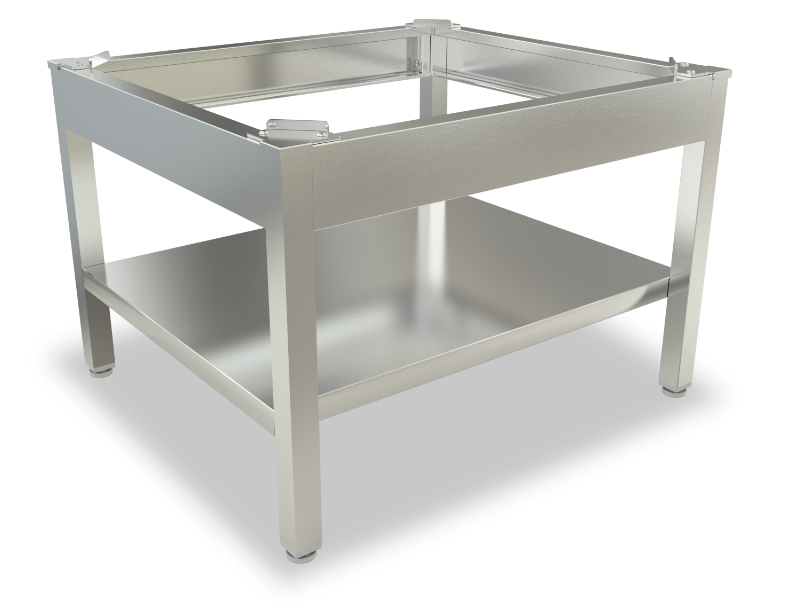 Подставка Техно-ТТ СПИ-033/1208 предназначена для установки на неё индукционной плиты ИПП-610145, ИПП-340145/310145, ИПВ-610115 и казана ИПК-610115, а также для хранения кухонного инвентаря на предприятиях общественного питания и торговли. Модель оснащена 1 сплошной полкой и регулируемыми по высоте ножками, что позволяет компенсировать неровности пола. Разборный каркас и полка выполнены из нержавеющей стали AISI 430.
