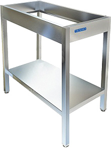 Подставка Техно-ТТ СПИ-033/407 предназначена для установки на неё индукционной плиты ИПП-210134, плиты WOK ИПВ-120114, казана ИПК-210114, грилей ИПГ-140164, ИПГ-140174, фритюрницы ИПФ-140164 и нейтральных модулей МН-90/400 и МН-91/400, а также для хранения кухонного инвентаря на предприятиях общественного питания и торговли. Модель оснащена 1 сплошной полкой и регулируемыми по высоте ножками, что позволяет компенсировать неровности пола. Каркас выполнен из трубы 40х40 из нержавеющей стали AISI 430, полка - из нержавеющей стали AISI 430.
