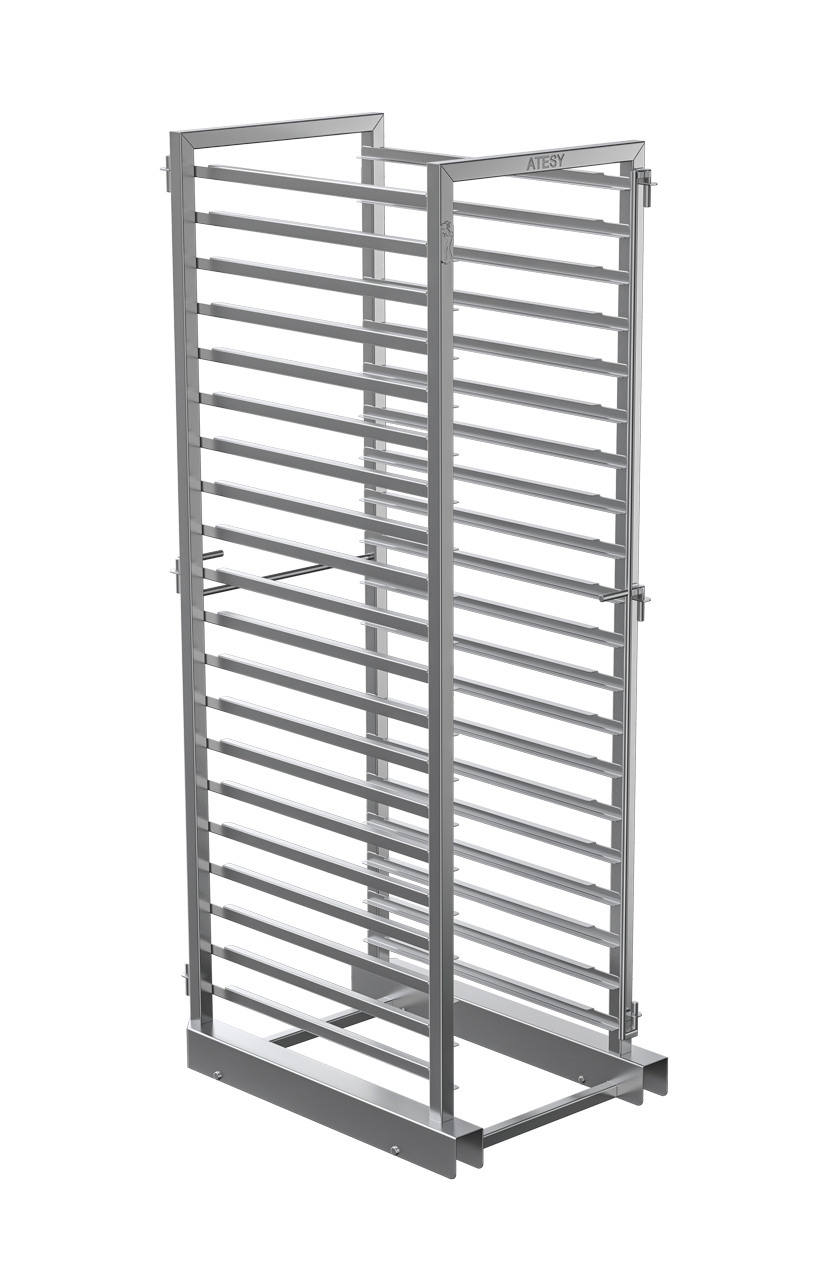 Шпилька ATESY РУБИКОН АПК-20-1.1-03-1 используется на предприятиях общественного питания и торговли для размещения на ней гастроемкостей и последующей установки в рабочую камеру пароконвектомата Рубикон АПК-20-1.1-03-01. Модель оснащена специальными запорными механизмами для надежной фиксации в камере пароконвектомата и на тележке. Изделие выполнено из нержавеющей стали AISI 304 толщиной 1,5 мм.