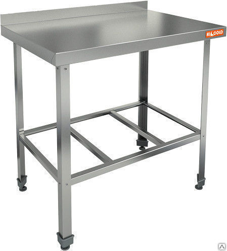 Столешница выполнена из нержавеющей стали AISI 430 (0,8 мм) , каркас - из металлического оцинкованного уголка 40х40 мм. Борт высотой 50 мм защищает стену и готовые блюда от загрязнения. Ножки стола регулируются по высоте, что помогает избежать наклона рабочей поверхности стола.