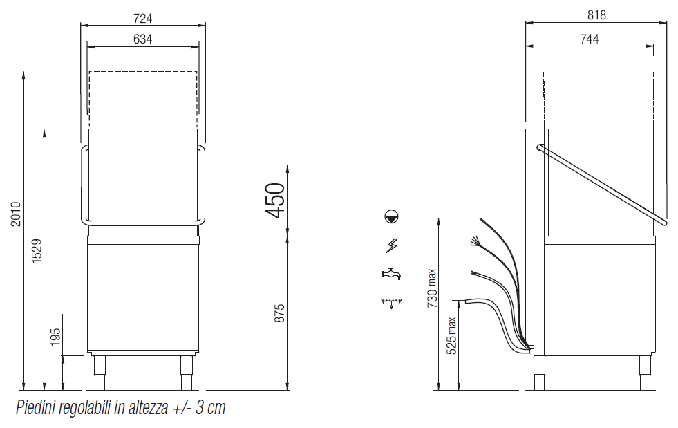 Купольная посудомоечная машина Elettrobar FAST 80 используется на предприятиях общественного питания для мытья стаканов, посуды и кухонной утвари, а также подносов и гастроемкостей GN 1/1. Модель оснащена электромеханической панелью управления со световыми индикаторами и регулируемыми по высоте ножками.