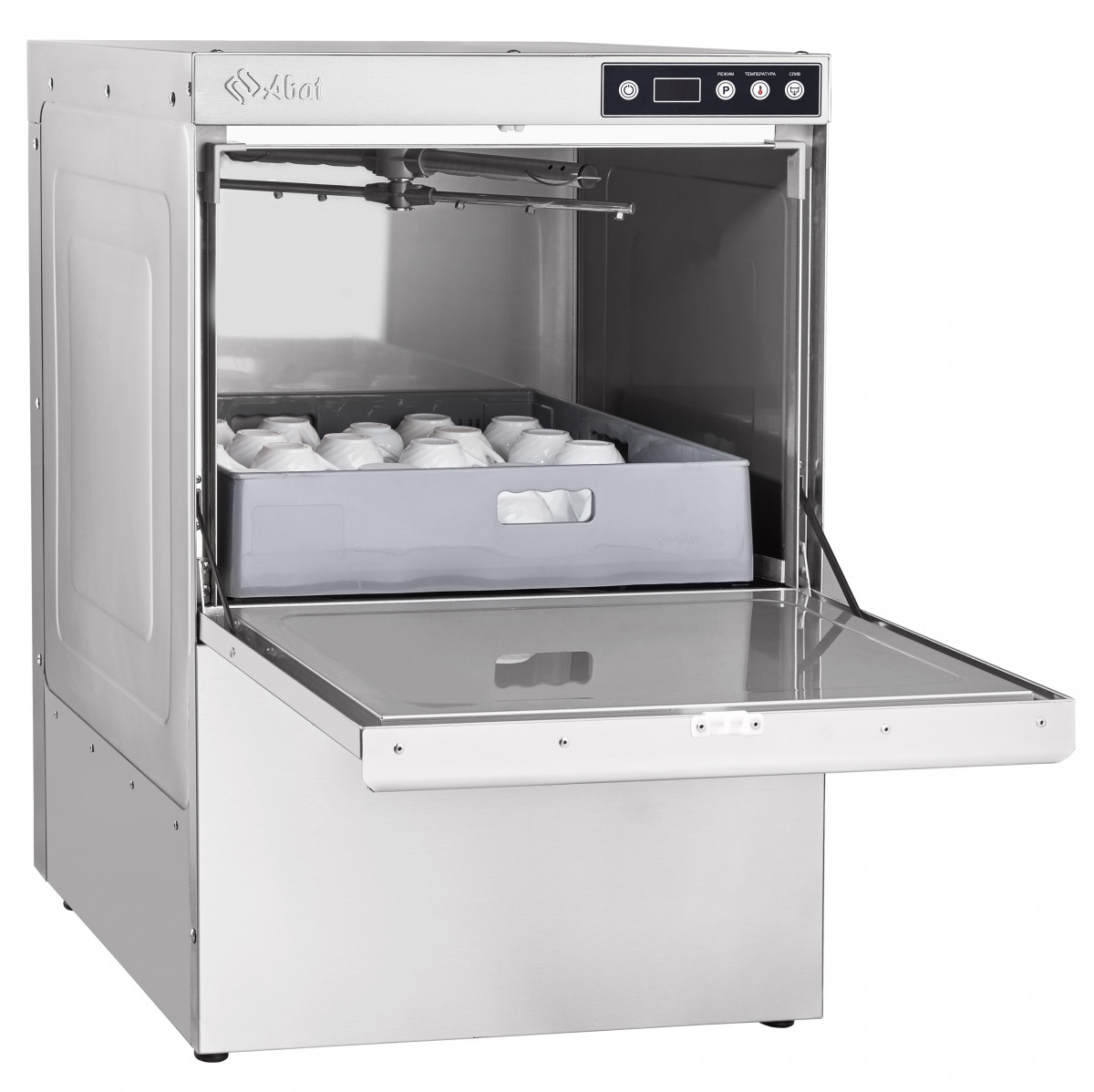 Посудомоечная машина с фронтальной загрузкой Abat МПК-500Ф-01-230 используется на предприятиях общественного питания и торговли для мойки тарелок, стаканов, бокалов, столовых приборов, а также гастроемкостей и противней.