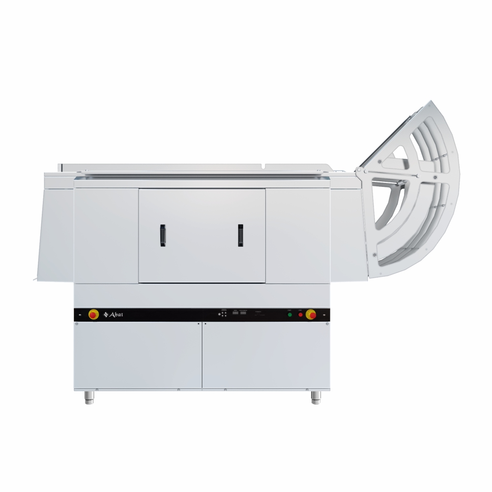 Таромоечная машина Abat МТТ-150В предназначена для мытья ящиков и контейнеров в производственных цехах. Управление работой машины осуществляется с кнопочной электронной панели, на которой отображается температура воды в ванне, бойлере и выбранная программа мойки (скорость конвейера). В зависимости от загрязнения тары можно выбрать одну из трех доступных программ.