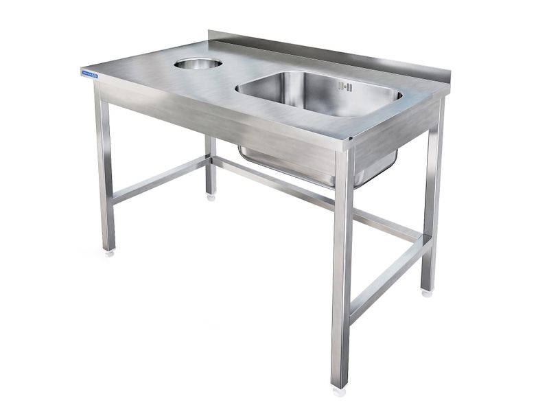 Стол для грязной посуды Kayman СПМ-123/1507 левый для посудомоечной машины TATRA - необходимая опция, для эргономичного оснащения линии мойки посуды. Предназначен для ополаскивания посуды и другой кухонной утвари перед мытьём в посудомоечной машине.