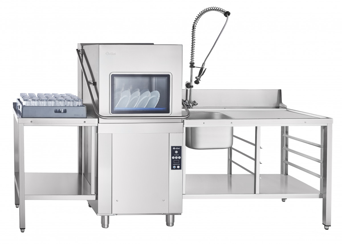 Стол предмоечный Abat СПМП-6-3 имеет цельнотянутую ванну для предварительного ополаскивания посуды (400х400х250 мм),душирующее устройство для холодной и горячей воды, регулируемые по высоте ножки, нижнюю полку и направляющие для установки трех кассет 500х500 мм. Крепление к посудомоечной машине осуществляется с помощью верхнего зацепа и нижних винтов. Путем несложного монтажа стол можно установить как в левом, так и правом исполнении.