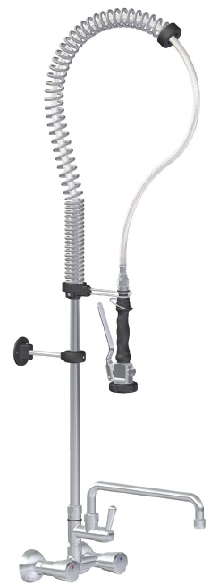Душирующее устройство Rubinetterie Del Friuli / Mixer Tap F+shower B / 00958017 для предприятий общепита. Настенное крепление, резьба 1/2"M. Снабжен двумя эксцентриками, благодаря которым расстояние между центрами водопроводных труб можно варьировать от 130 до 170 мм. Имеет 2 червячные кран-буксы с резиновыми манжетами и душ Top-Class высотой 1200 мм с настенным креплением, шлангом длиной 1100 мм из нержавеющей стали и дополнительным краном с поворотным гусаком длиной 250 мм (верхний излив). Изготовлен и высококачественной латуни с хромированным покрытием. Максимальное рабочее давление - 5 атм. Подача воды при давлении в водопроводе 3 атм - до 17 л/ч.