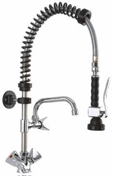 Душирующее устройство CanCan CC.MT06 используется для предварительной очистки посуды перед загрузкой её в посудомоечную машину, а также для мытья овощей и фруктов на предприятиях общественного питания. Модель оснащена смесителем для горячей и холодной воды, краном и кронштейном для крепления на стену. Корпус, система крепления к стене, смеситель сделаны из хромированной латуни, труба из нержавеющей стали.