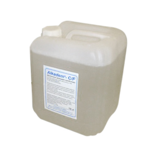 Средство моющее Demo ALKADEM-C-F 10КГ . Средство для ручных и автоматических систем мойки пароконвектоматов и аналогичного теплового оборудования, является водным раствором гидроксидов калия и натрия около 35%, комплексообразователей и неионогенных ПАВ, представляет собой желтовато-коричневатую полупрозрачную вязкую жидкость плотностью 1,37 г/см3 неограниченно растворимую в воде, при рекомендуемых к использованию концентрациях растворяется полностью с образованием прозрачных бесцветных растворов с рН в пределах 12,5-13,0. канистры по 10 кг, хранить при температуре -5+25С°