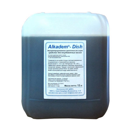 Средство моющее Demo ALKADEM-DISH 12кг . Средство щелочное концентрированное моющее для посудомоечных машин,12кг,рН раствора с концентрацией 3 г/л: 12,7-13,3, дозировка: 2 - 4 г/л. при температуре + 40 - 950С, вязкость (концентрат 200С): около 5 сПз.