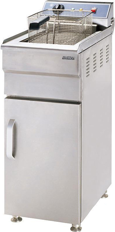 Профессиональная фритюрница AIRHOT EF16S напольная предназначена для приготовления широкого спектра блюд в большом объеме масла или жира на предприятиях общественного питания и торговли. Модель оснащена электромеханической системой управления, регулировкой температуры. Корпус выполнен из нержавеющей стали.