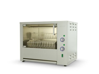 Гриль для кур ATESY Командор-4Э-Т используется на предприятиях общественного питания и торговли. Модель оснащена таймером, электродвигателем, терморегулятором, ТЭНами с отражателями тепла, съемными садками, внутренней подсветкой камеры и поддоном для сбора жира. Корпус и все внутренние элементы выполнены из пищевой нержавеющей стали, дверцы - из термостойкого ударопрочного стекла с добавлением горного хрусталя, ручки дверей - из термостойкого пластика, и ножки - из пластмассы.