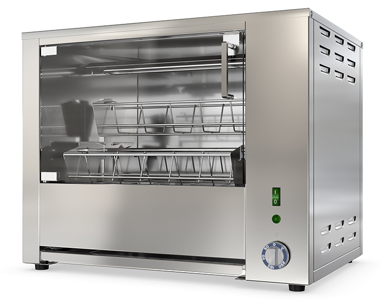 Гриль для кур ATESY Командор-4Э используется на предприятиях общественного питания и торговли. Модель оснащена электродвигателем, терморегулятором, ТЭНами с отражателями тепла, съемными садками, внутренней подсветкой камеры и поддоном для сбора жира. Корпус и все внутренние элементы выполнены из пищевой нержавеющей стали, дверцы - из термостойкого ударопрочного стекла с добавлением горного хрусталя, ручки дверей - из термостойкого пластика, и ножки - из пластмассы.
