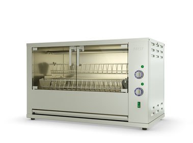 Гриль для кур ATESY Командор-5Э-Т используется на предприятиях общественного питания и торговли. Модель оснащена таймером, электродвигателем, терморегулятором, ТЭНами с отражателями тепла, съемными садками, внутренней подсветкой камеры и поддоном для сбора жира. Корпус и все внутренние элементы выполнены из пищевой нержавеющей стали, дверцы - из термостойкого ударопрочного стекла с добавлением горного хрусталя, ручки дверей - из термостойкого пластика, и ножки - из пластмассы.