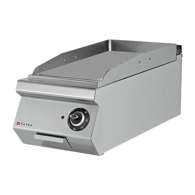 Жарочная поверхность Tatra TET.47R предназначена для жарки мяса, птицы, рыбы, овощей и быстрого разогрева полуфабрикатов на предприятиях общественного питания и торговли. Модель оснащена рифленной поверхностью с одной зоной нагрева, электромеханической панелью управления с термостатом, регулируемыми ножками и съемной емкостью для сбора жира. Корпус выполнен из нержавеющей стали.