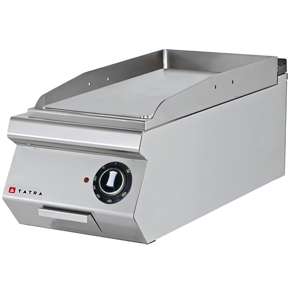 Жарочная поверхность Tatra TET.49S предназначена для жарки мяса, птицы, рыбы, овощей и быстрого разогрева полуфабрикатов на предприятиях общественного питания и торговли. Модель оснащена гладкой поверхностью с одной зоной нагрева, электромеханической панелью управления с термостатом, регулируемыми ножками и съемной емкостью для сбора жира. Корпус выполнен из нержавеющей стали.