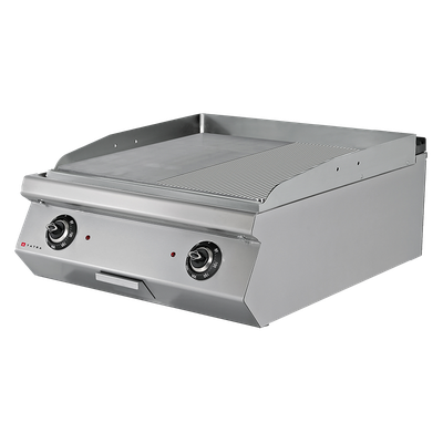 Жарочная поверхность Tatra TET.87SR предназначена для жарки мяса, птицы, рыбы, овощей и быстрого разогрева полуфабрикатов на предприятиях общественного питания и торговли. Модель оснащена комбинированной жарочной поверхностью с двумя зонами нагрева (1/2 гладкая+1/2 рифленая) с независимой регулировкой, электромеханической панелью управления с термостатом, регулируемыми ножками и съемной емкостью для сбора жира. Корпус выполнен из нержавеющей стали.
