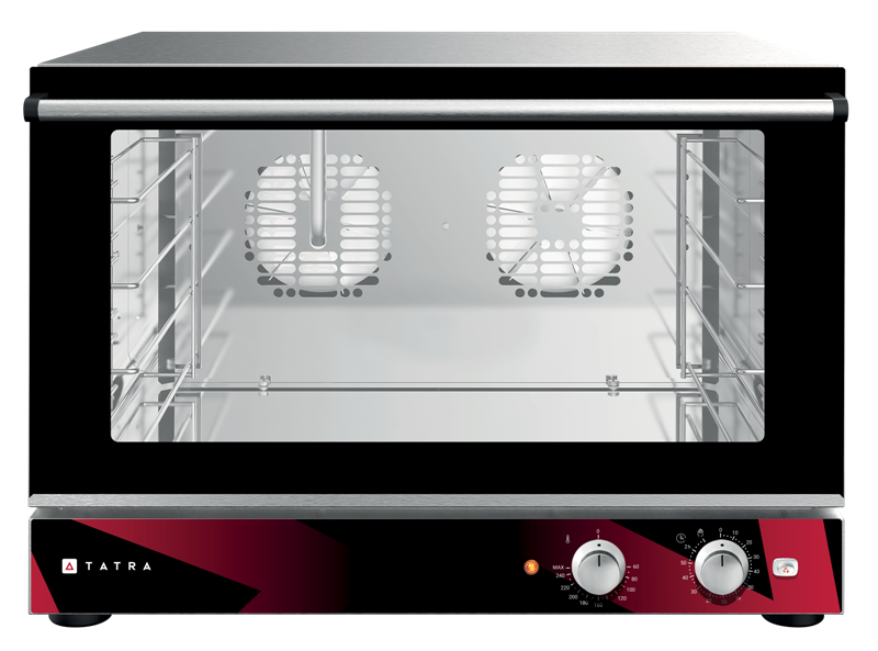 Конвекционная печь Tatara TO46MIHS предназначена для выпекания или разогрева кондитерских и хлебобулочных изделий, готовых блюд, замороженных или предварительно выдержанных в расстоечном шкафу заготовок из теста на предприятиях общественного питания и торговли. Модель оснащена электромеханической панелью управления и 2 реверсивными вентиляторами. Корпус и камера выполнены из нержавеющей стали, двойная дверца - из закаленного стекла.