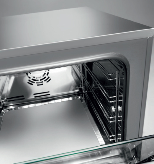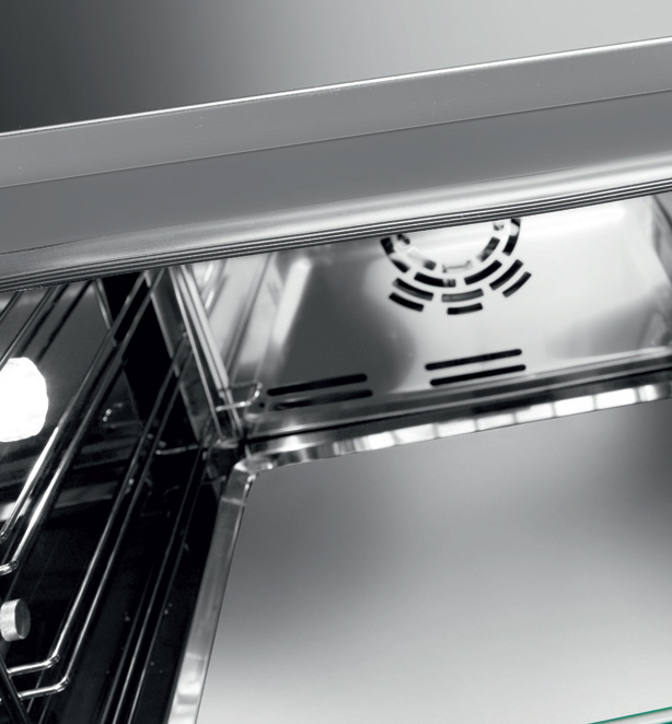 Функция принудительного охлаждения гарантирует защиту всех электрических компонентов устройства от перегрева. Внутреннее освещение и двойное термостойкое стекло в распашной двери позволяют наблюдать за процессом приготовления продуктов без необходимости открывания дверцы.
