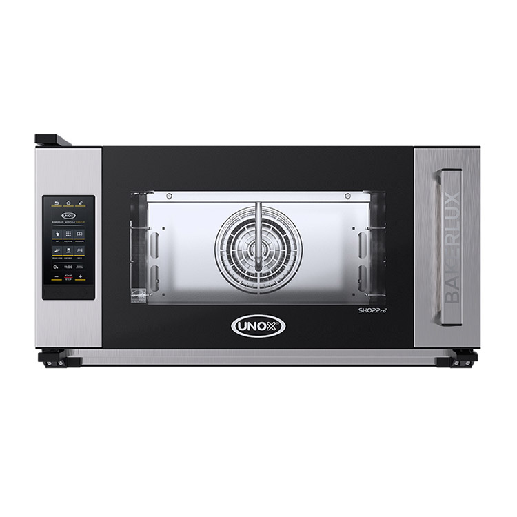 Печь конвекционная UNOX XEFT-03EU-EMRV серии BakerLux Shop.Pro предназначена для приготовления различных блюд, выпечки хлебобулочных и кондитерских изделий на предприятиях общественного питания и торговли, в пекарнях и кондитерских. Модель оснащена электронным управлением, светодиодной подсветкой и L-образными направляющими. Легко открывающееся внутреннее стекло облегчают чистку и обеспечивает максимальную гигиену. Камера выполнена из нержавеющей стали, направляющие - из гнутого стального листа.