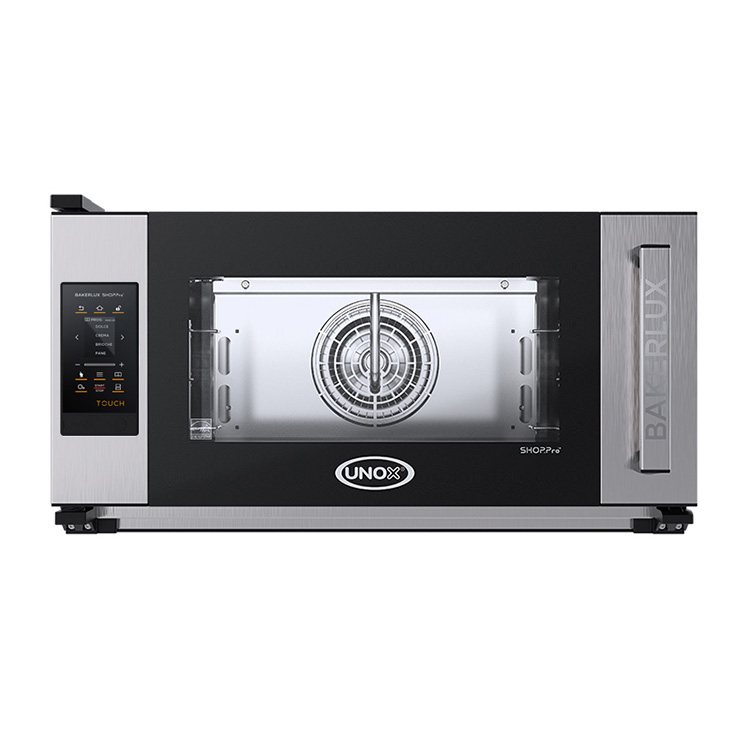 Печь конвекционная UNOX XEFT-03EU-ETRV серии BakerLux Shop.Pro предназначена для приготовления различных блюд, выпечки хлебобулочных и кондитерских изделий на предприятиях общественного питания и торговли, в пекарнях и кондитерских. Модель оснащена электронным управлением, светодиодной подсветкой и L-образными направляющими. Легко открывающееся внутреннее стекло облегчают чистку и обеспечивает максимальную гигиену. Камера выполнена из нержавеющей стали, направляющие - из гнутого стального листа.