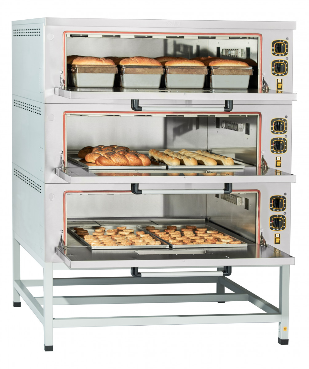 Шкаф пекарский электрический ЭШП-3-01 подовый с функцией пароувлажнения предназначен для выпечки кондитерских и хлебобулочных изделий на предприятиях общественного питания самостоятельно или в составе технологической линии.