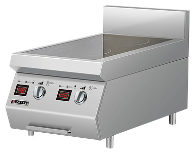 Настольная индукционная плита Tatra TIR.47M серии 700 предназначена для приготовления большого ассортимента блюд на предприятиях общественного питания и торговли. Модель оснащена 2 независимыми варочными зонами, электромеханической панелью управления с 2 поворотными переключателями и 2 светодиодными цифровыми дисплеями с красной подсветкой индикации. Корпус выполнен из высококачественной нержавеющей стали, рабочая поверхность – из стеклокерамики толщиной 2 мм.