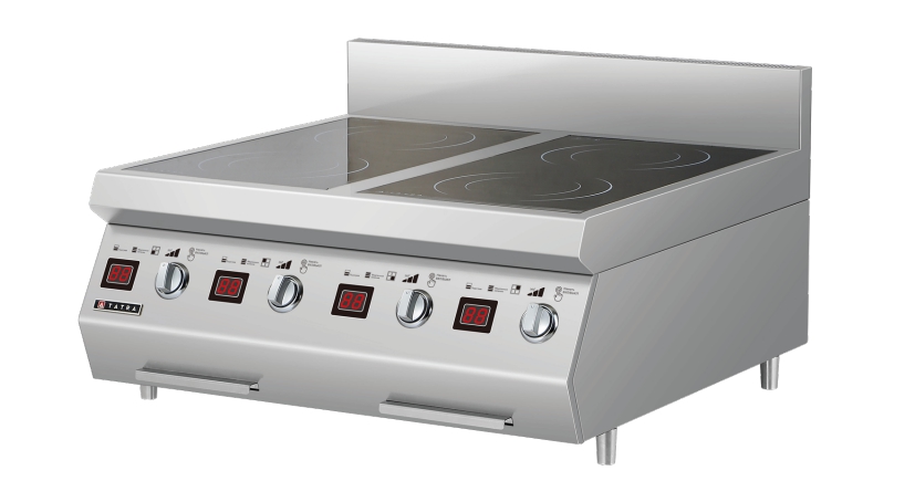 Настольная индукционная плита Tatra TIR.87M серии 700 предназначена для приготовления большого ассортимента блюд на предприятиях общественного питания и торговли. Модель оснащена 4 независимыми варочными зонами, электромеханической панелью управления с 4 поворотными переключателями и 4 светодиодными цифровыми дисплеями с красной подсветкой индикации. Корпус выполнен из высококачественной нержавеющей стали, рабочая поверхность – из стеклокерамики толщиной 2 мм.
