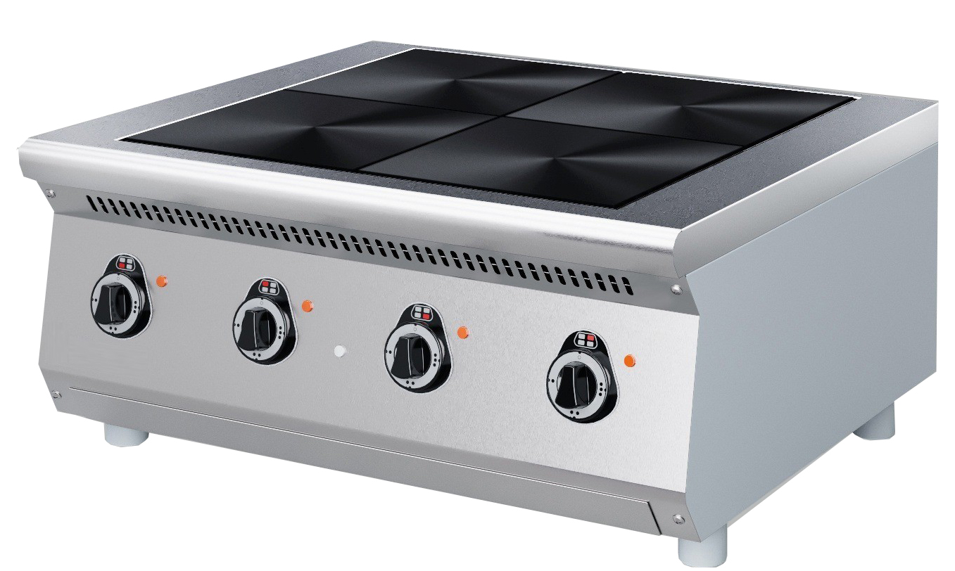 Плита электрическая 4-х конфорочная KAYMAN ПЭ-4-12-МХ предназначена для приготовления первых и вторых блюд, а также для жарки полуфабрикатов из мяса, рыбы, овощей на предприятиях торговли и общественного питания. Корпус, столешница и лицевая часть выполнены из нержавеющей стали, конфорки - из чугуна.