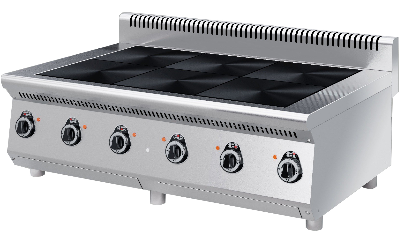 Плита электрическая 6-ти конфорочная KAYMAN ПЭ-6-121-МХ с воздуховодом предназначена для приготовления первых и вторых блюд, а также для жарки полуфабрикатов из мяса, рыбы, овощей на предприятиях торговли и общественного питания. Корпус, столешница и лицевая часть выполнены из нержавеющей стали, конфорки - из чугуна.