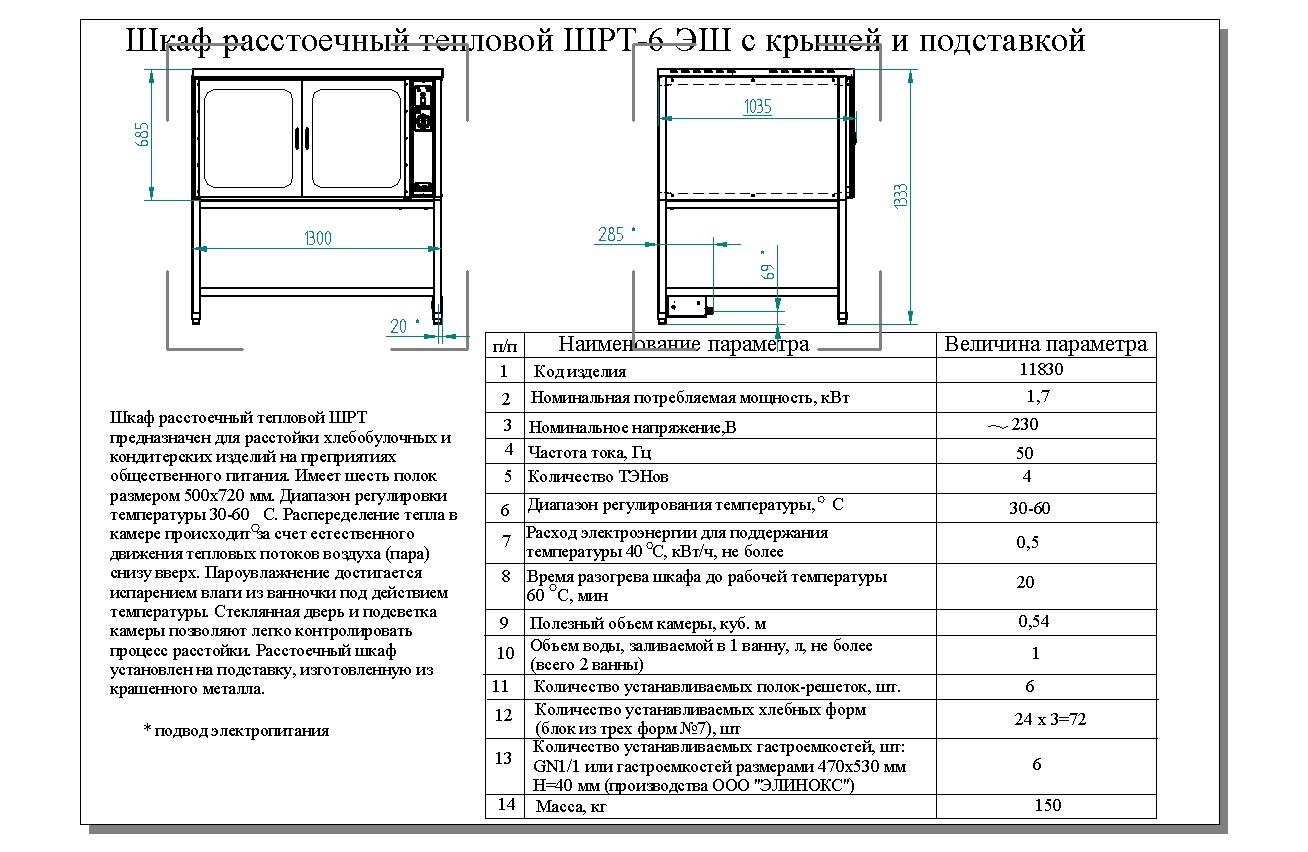 Технические параметры Расстоечная камера Abat ШРТ-6ЭШ