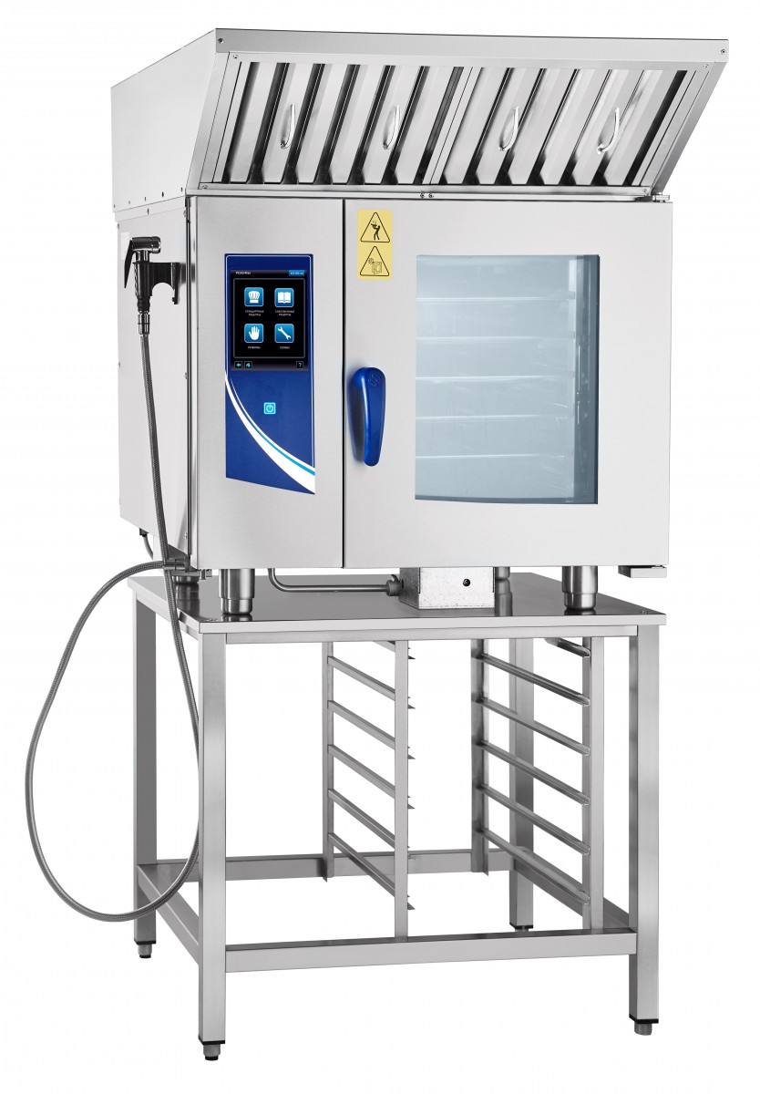 Зонт Abat ЗВВ-800 предназначен для установки на пароконвектоматы типа ПКА-6-1/1 и ПКА-10-1/1 и состоит из трех основных частей: корпуса, съемного лабиринтного фильтра и вентилятора. Подсоединяется к пароконвектомату с помощью кабеля питания (1,8 м с заземлением) и фиксируется с помощью уголков и болтов М5 к задней стенке мини-пароконвектомата.
